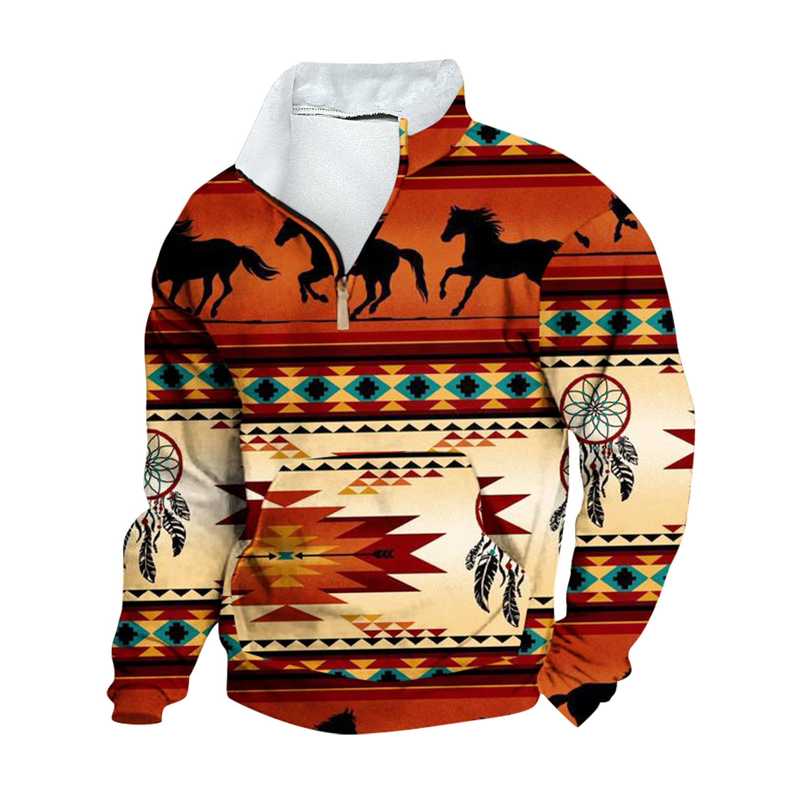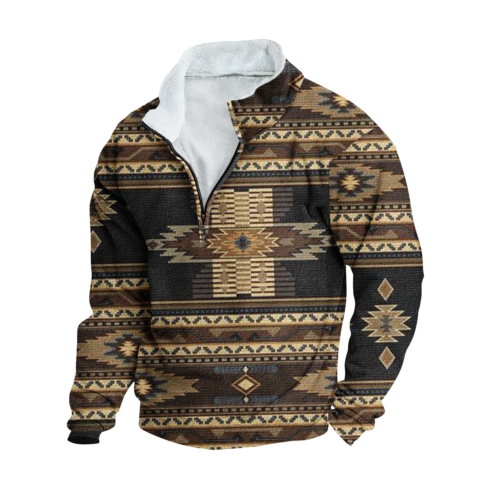 Mens FleeceNeck LongSleeve HalfZip Printed Jacket