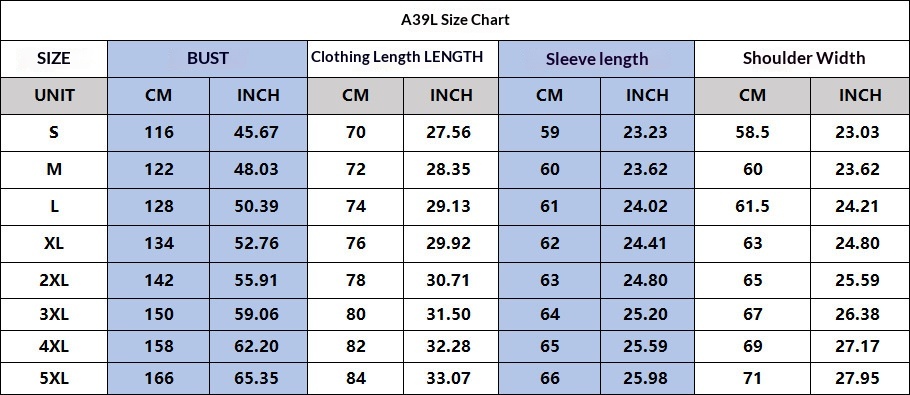 Sizes: S, M, L, XL, 2XL, 3XL, 4XL, 5XL