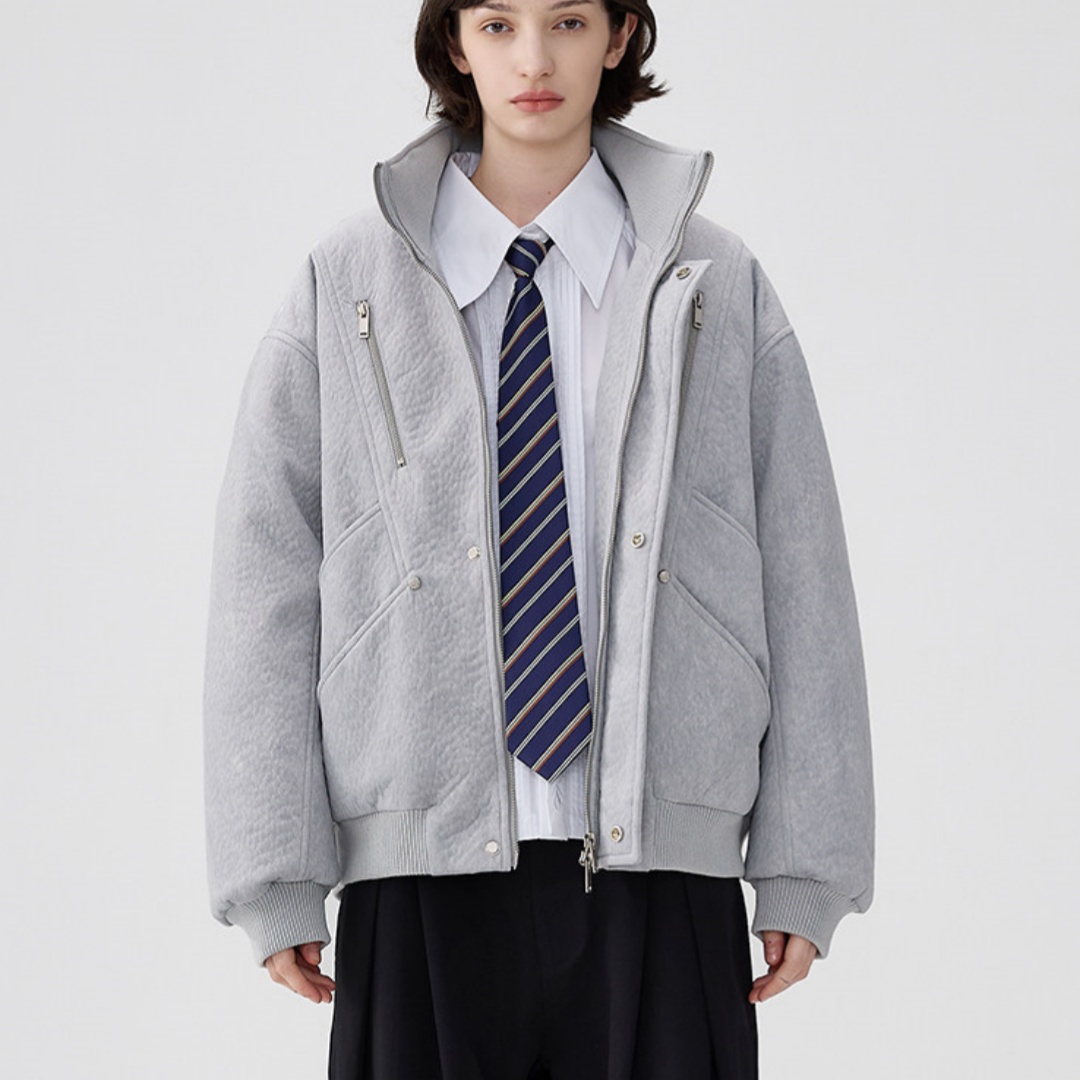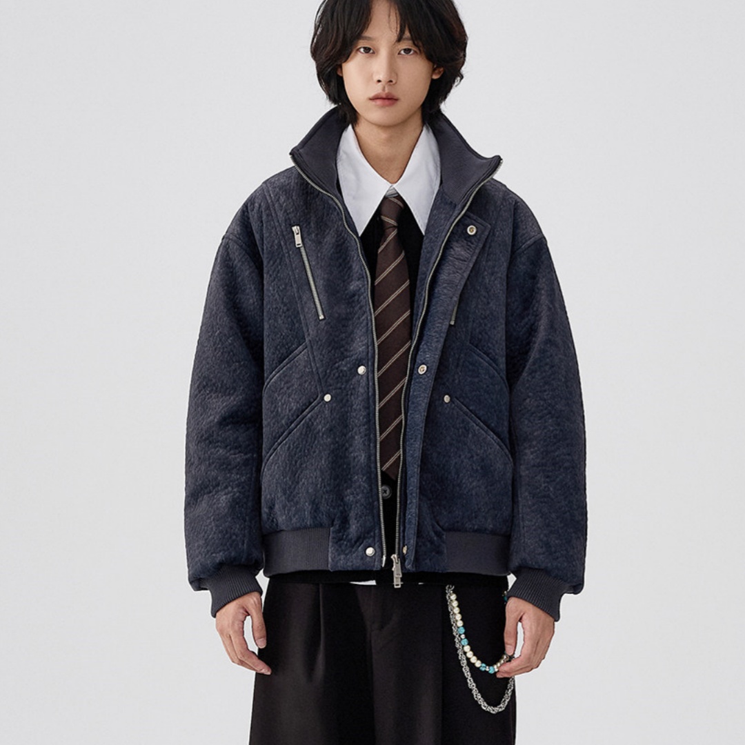 Mens Thick Solid-Color Wool Jacket Short Padded Coat